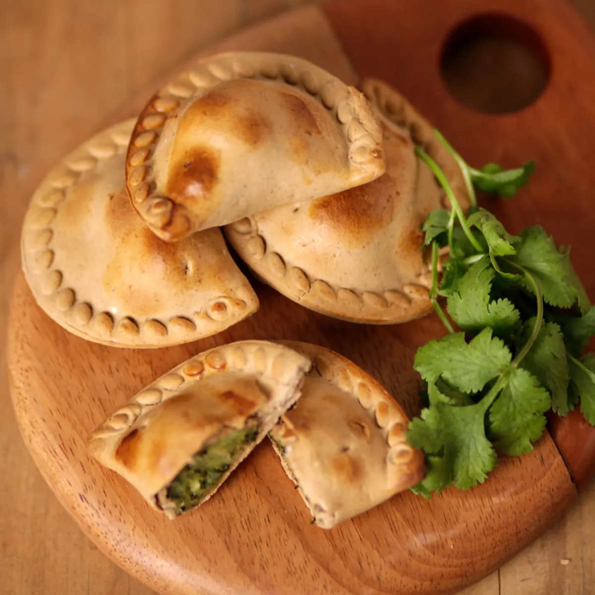 empanaditas de cocktail congeladas, rellenas con espárrago y queso crema, masa pre-cocida, listas para hornear y servir.