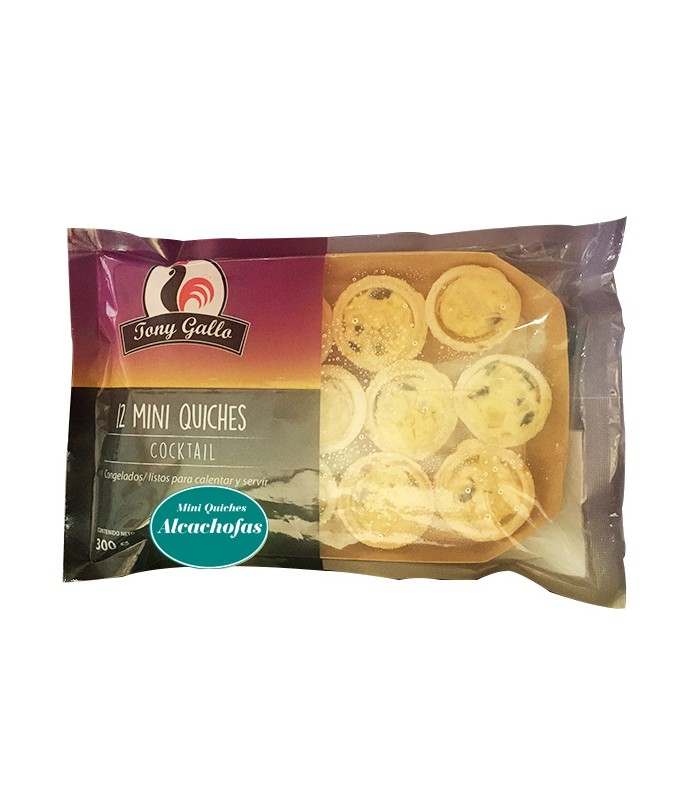 Masas pequeñas, cocidas y congeladas, rellenas con alcachofa – cebolla, más una mezcla de crema de leche, queso crema y huevo.