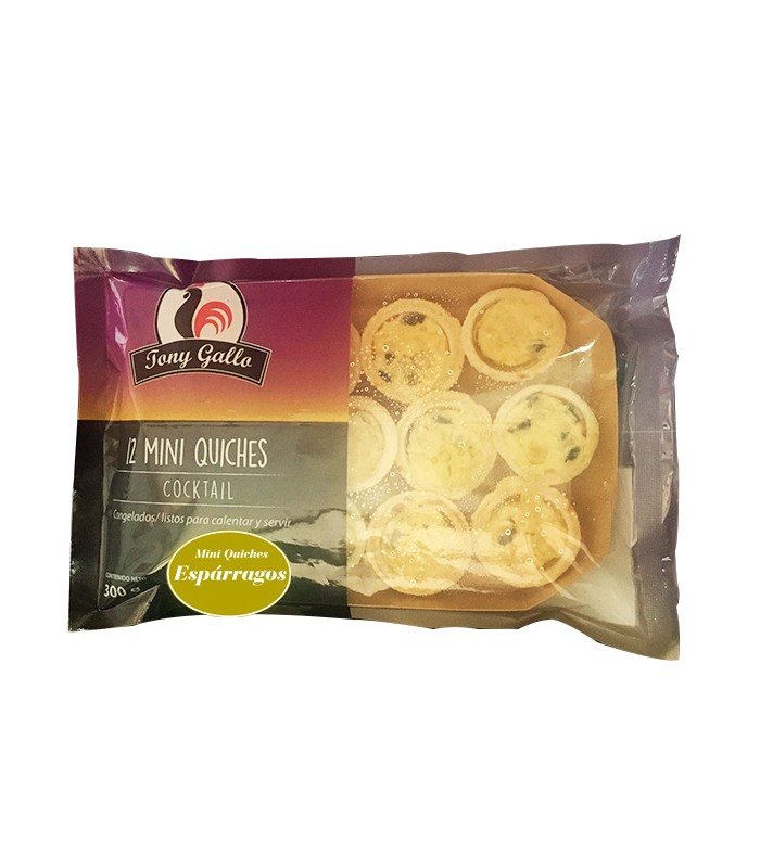 Masas pequeñas, cocidas y congeladas, rellenas con espárrago – cebolla, más una mezcla de crema de leche, queso crema y huevo.