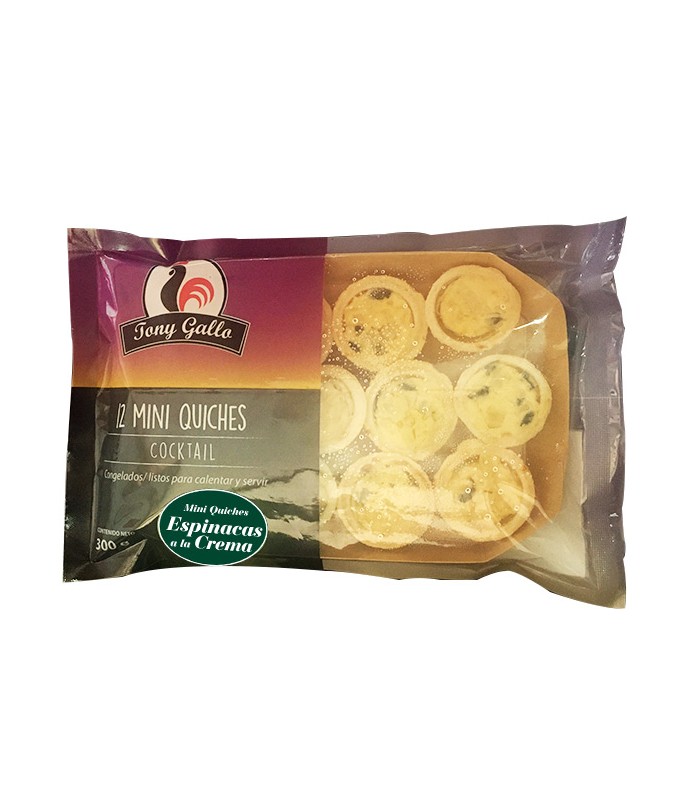 Masas pequeñas, cocidas y congeladas, rellenas con espinaca – tocino, más una mezcla de crema de leche, queso crema y huevo.