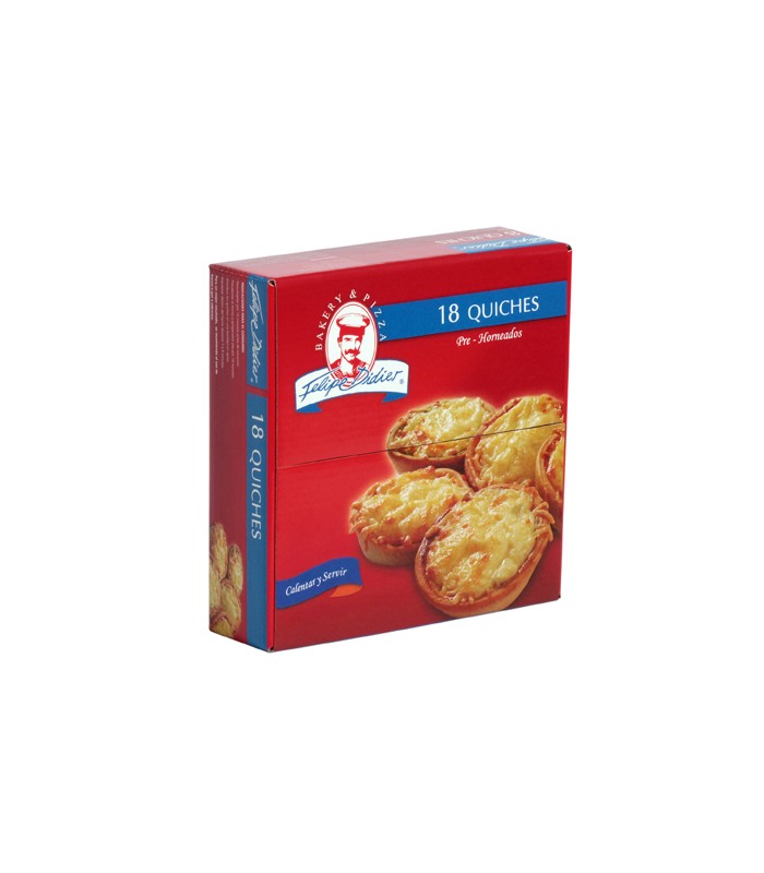 Masas pequeñas, pre-cocidas y congeladas, 9 rellenas con jamón de pavo – pimiento rojo, 9 rellenas con espinaca – tocino, más una mezcla de crema de leche, queso crema y huevo. Listos para hornear y servir.