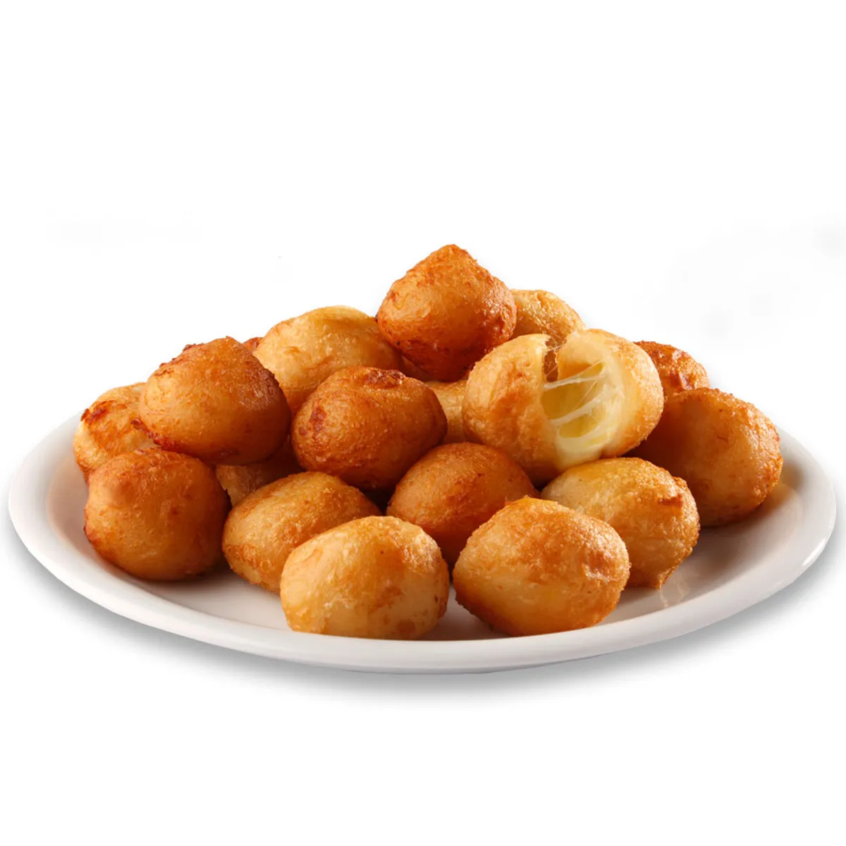 Bolita mediana de papa molida cocida, mezclada con harina, leche y mantequilla, rellena con queso para derretir.