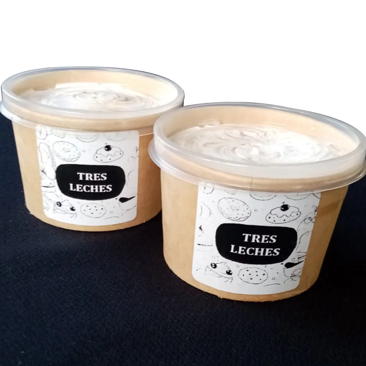 Postre congelado en pote pequeño, elaborado con bizcocho de vainilla, leche evaporada, leche condensada, crema de leche y merengue italiano.